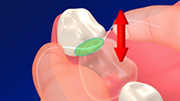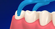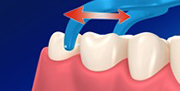 歯の根元まで入ったら、歯に巻きつけるようにして上下に動かし、歯垢を落とします。隣り合った歯の両方の面を清掃します。