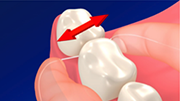 中まで入ったら、上下に動かし、隣り合った歯の両方の面を磨きます。