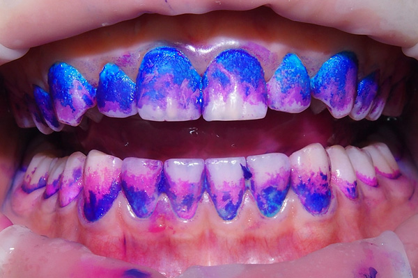 健康な歯肉なのか?歯肉炎なのか?歯周炎なのか?を見ていきます。 - ●染出し(磨き残しを見ていきます)