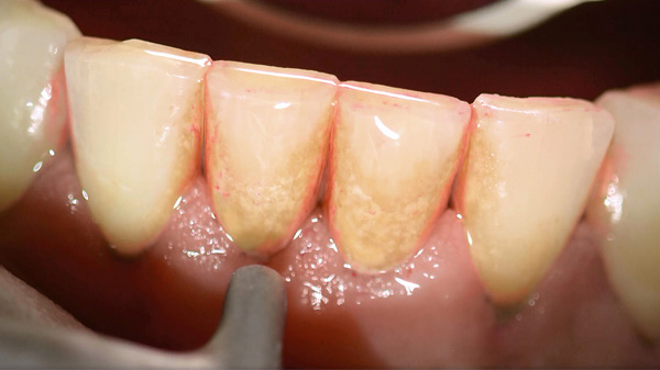 GBTではバイオフィルムをしっかりと目に見える状態にして処置をしていきます。そのため、器具による歯への不要な接触を極力減らします。